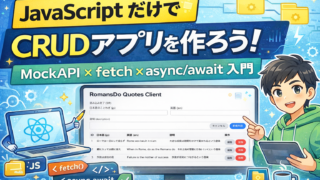 JavaScript フレームワーク不要!JavaScriptだけで作るCRUDアプリ【MockAPI対応】 MockAPIを使って、JavaScriptだけでCRUD(一覧・作成・更新・削除)アプリを作成します。fetchとasync/awaitによる非同期通信、DOM操作の基本を実践的に解説します。 2025.12.25 JavaScript